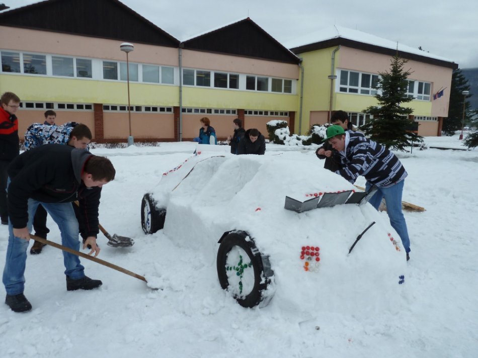 Galéria k článku FOTO: Revúcki študenti sa vynašli. Zo snehu vyrobili auto