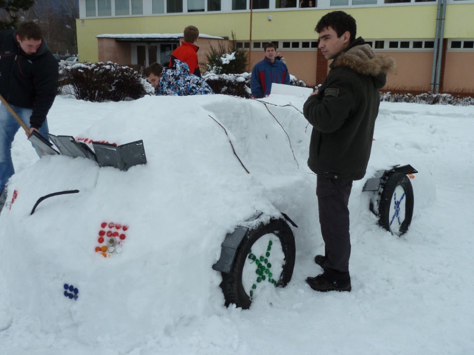 Galéria k článku FOTO: Revúcki študenti sa vynašli. Zo snehu vyrobili auto