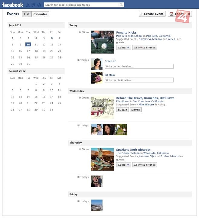 Organizácia udalostí - Facebook