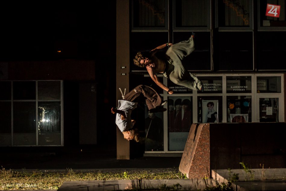 Nočný parkour v uliciach mesta