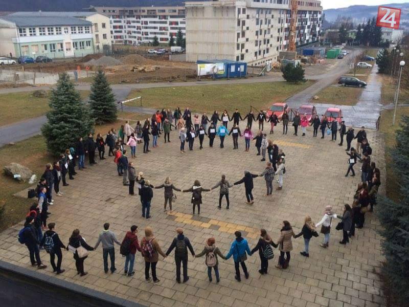 Galéria k článku FOTO a VIDEO: Takéto obrázky sa naskytli pred gymnáziom v Bystrici. Živá reťaz učiteľov so žiakmi!