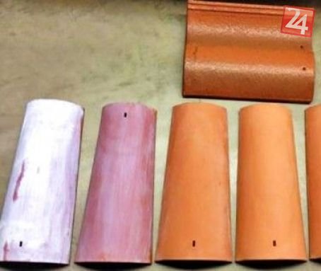Škridla pokrytá oxidom titaničitým (vľavo) a bez náteru