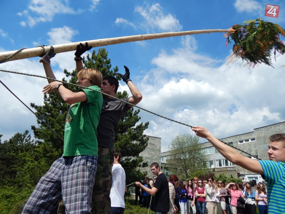 Galéria k článku Bystrickí gymnazisti nezabúdajú na tradície: Na nádvorí školy si vztýčili máj